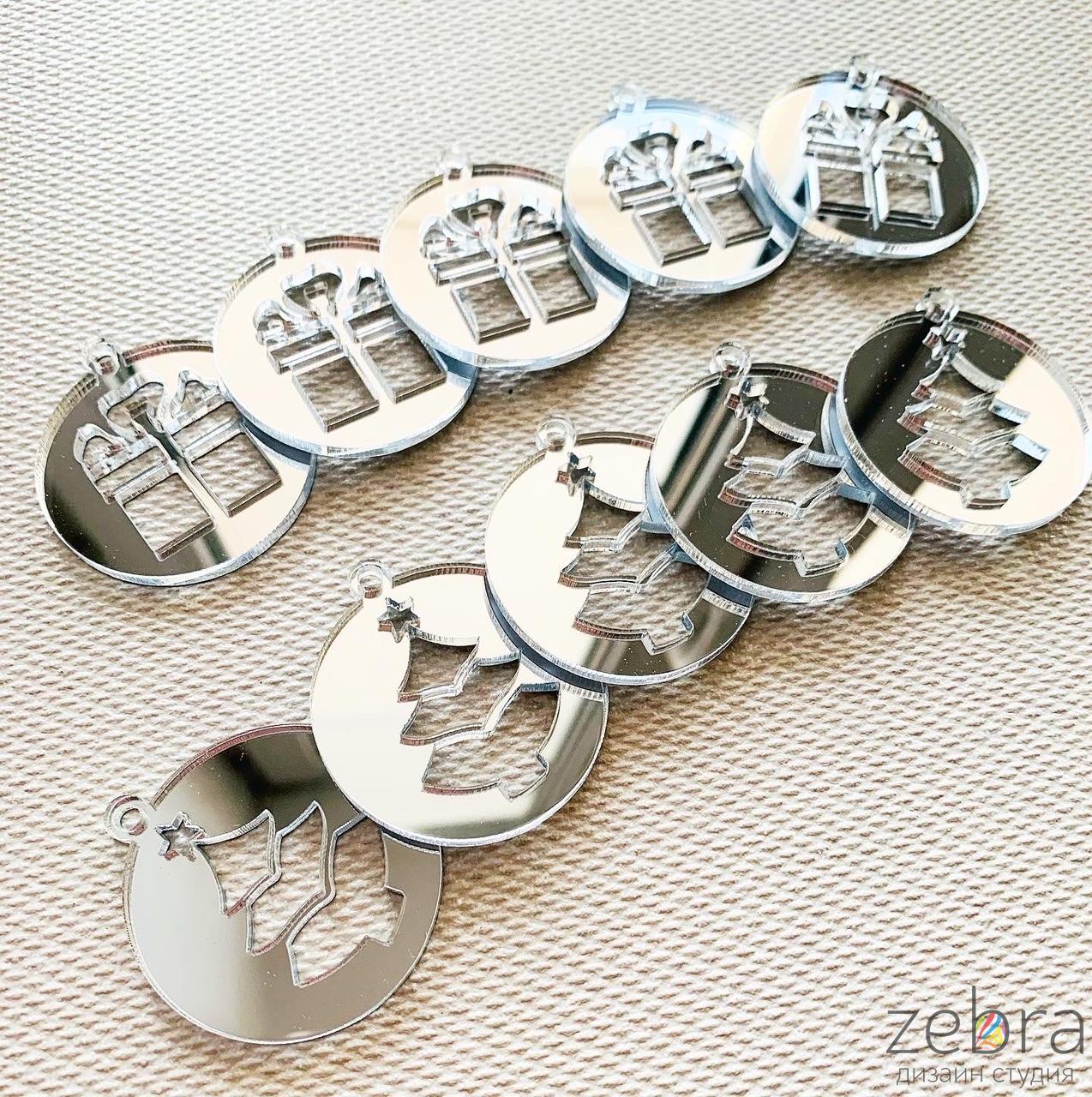 Набор новогодних бирок. В набор входит 10 бирок. Диаметр бирки 4 см. Толщина материала 3 мм. Изделия в прозрачной защитной плёнке.
