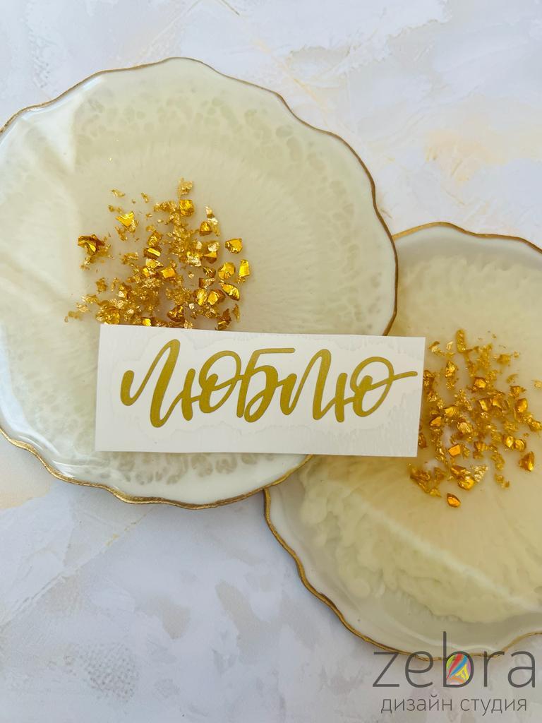 - Прозрачную плёнку с наклейкой приложить липкой стороной к поверхности изделия, после чего тщательно разгладить наклейку через плёнку по поверхности изделия, чтобы она хорошо приклеилась.